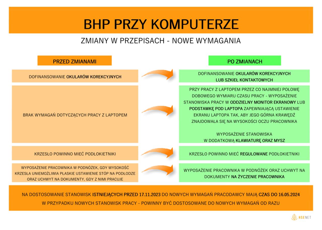 Ważne zmiany dotyczące BHP przy komputerze. 17 listopada 2023 weszło w życie zmienione rozporządzenie ministra rodziny i polityki społecznej w sprawie bezpieczeństwa i higieny pracy na stanowiskach wyposażonych w monitory ekranowe (Dz.U. z 2023 r., poz. 2367).